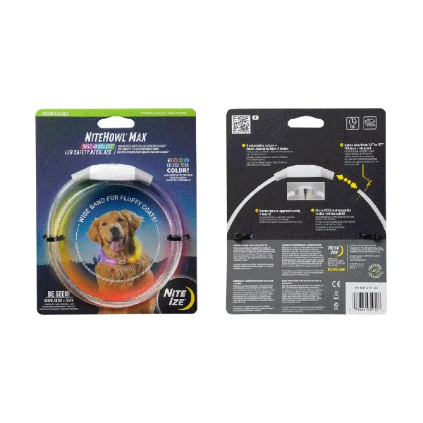 NITE IZE NiteHowl LED Safety Necklace. This rechargeable necklace provides a full-circle glow designed for fluffy pups. Order yours Today!